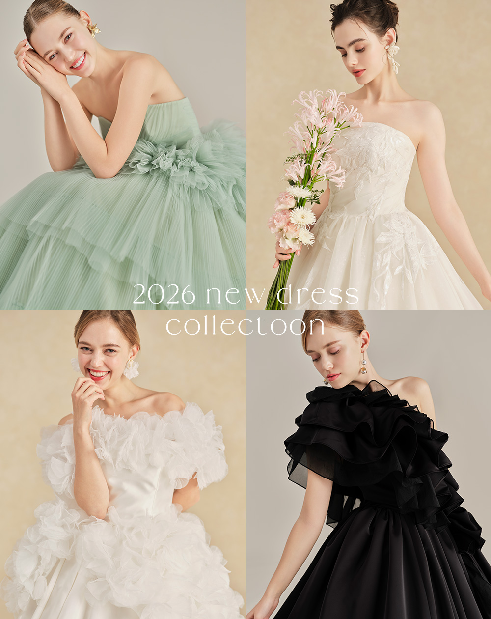 SNSで話題のインポート風デザインや、素材とカッティングにこだわったTAKAMI BRIDALオリジナルドレスがラインアップ。